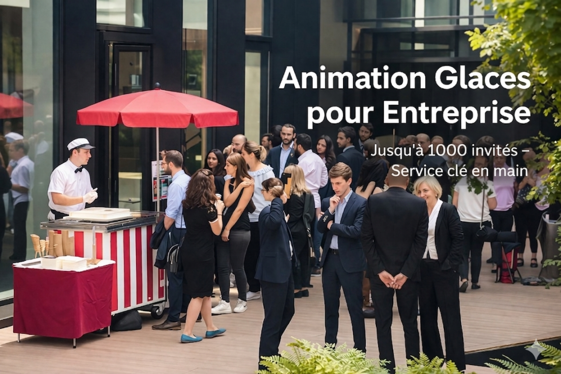 | Animation glace entreprise clé en main Notre équipe arrive le jour J pour installer un bar à glaces professionnel sans aucune préparation de votre part. Nous assurons le service continu de glaces artisanales « fait maison » pour garantir une expérience gourmande et mémorable à vos invités. Pourquoi choisir notre solution ?